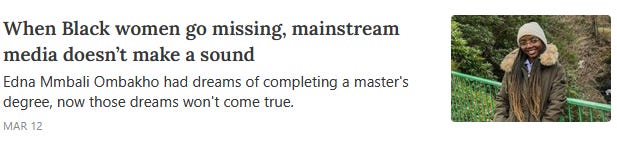 Through the years as a journalist, it’s become even more evident to me how the Black community has been conditioned to live without answers, without meaningful investigations, without seeing itself reflected in the media. Instead, Black people are overlooked and underreported on, forced to settle for inadequate coverage that has no depth but seeks to exploit for views and clicks. The Black community deserves far, far better.
