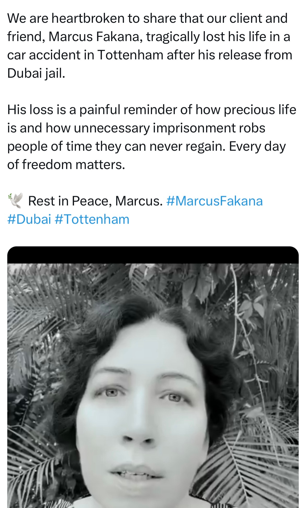 “Marcus had only been released from prison earlier this year. Despite everything he endured, he was grateful for the kindness of the British public, and he embraced his freedom with renewed faith, joy, and hope for the future.