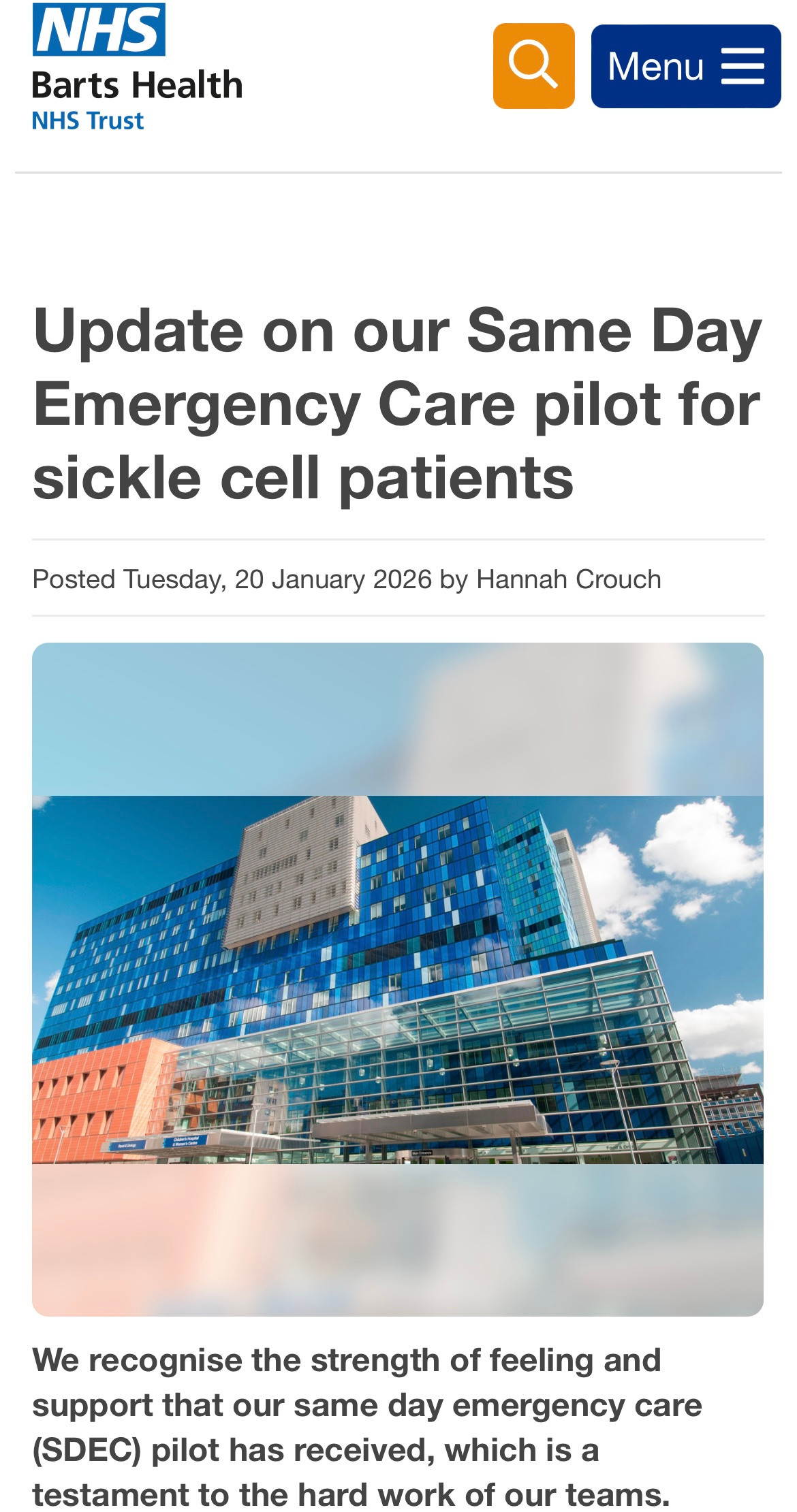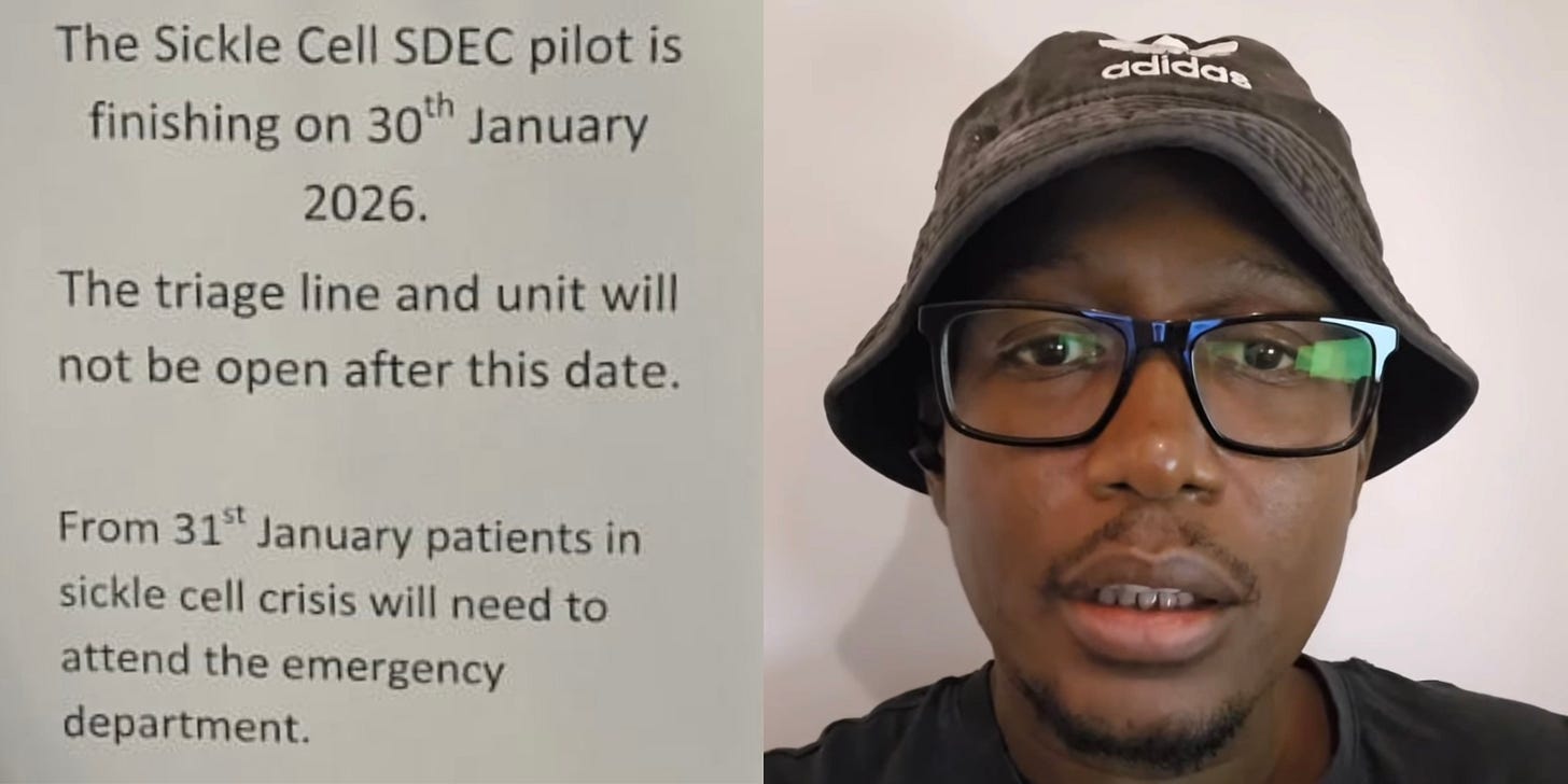 “There has been no clear communication to patients or the community about future emergency sickle cell provision. For many, the sickle cell day emergency unit pathway provided the only safe and timely care during acute pain crises, preventing long waits and unsafe treatment in A&E.”